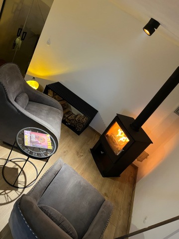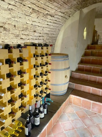 Součástí sklepa je lisovna, která nabízí komfortní posezení a atmosféru u krbu. S knihou, vínem nebo obojím? Nechte se inspirovat..